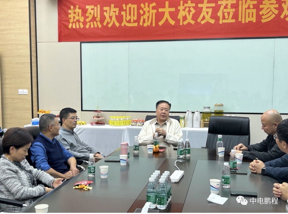 张志勇首先代表中电鹏程热烈欢迎各位校友的到来,并邀请大家参观中电鹏程的车间和展厅。张志勇向校友们详细介绍了中电鹏程的公司概况、发展历程、核心技术、创新能力、主要产品、资质荣誉和市场拓展等情况,特别介绍了中电鹏程的股权结构、持股平台等混合所有制改革等成果。