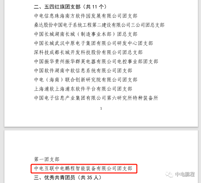 中电鹏程荣获中国电子“五四红旗团支部”荣誉