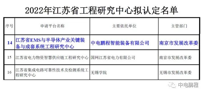 中电鹏程获批为“江苏省EMS与半导体产业关键装备