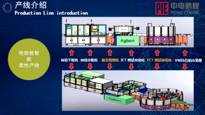 硬盘电路板智能柔性产线是中电鹏程开发的柔性产线第三代产品,具有技术和设备集成化、生产智能化、设计柔性化、产能高效化等优势。经专家委员会鉴定,“部分技术国内首创、部分指标达到国际先进水平”。