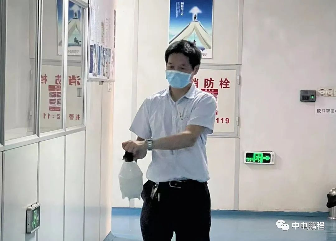 由于公司保洁人员被隔离,厂区消杀防护和卫生清扫一时成了难题。关键时刻,总有鹏程人站出来。为保持厂区卫生清洁,叶志军、郑拉锁等制造中心加工部员工主动承担起了厂区和宿舍消杀、清扫工作,坚持每日严格按照公司防控标准及要求进行消杀防护。