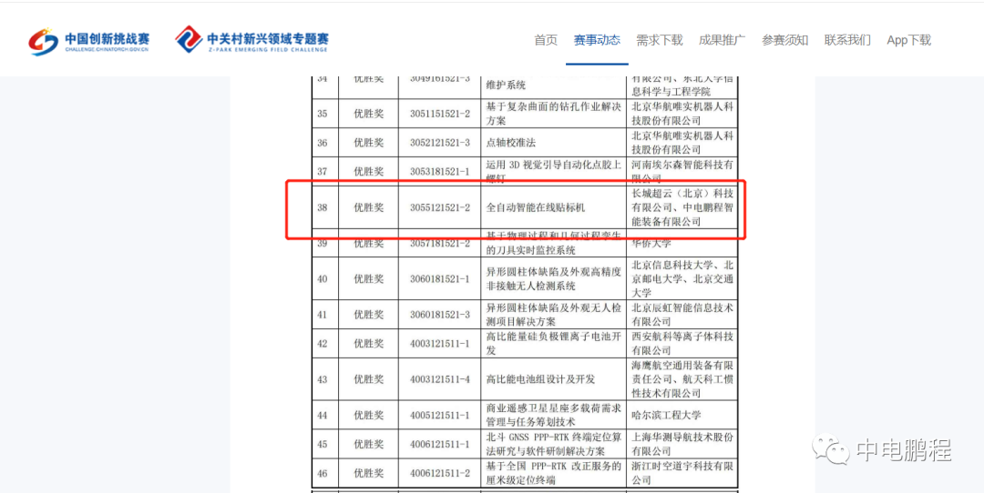 1月11日,科技部火炬中心、国家国防科工局信息中心、北京市科委主办的第六届中国创新挑战赛暨中关村第五届新兴领域专题赛揭晓比赛结果,中电鹏程智能装备有限公司(以下简称“中电鹏程”)联合生态伙伴长城超云(北京)科技有限公司,凭借项目“全自动智能在线贴标机”的全面、深度创新解决方案强势领跑,赢取智能制造领域专题赛一等奖。继摘取南京市企业技术中心、南京市工程研究中心荣誉后,中电鹏程科研实力再获权威认可,科技创新再结硕果。